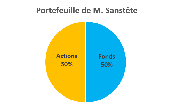 Monsieur Sanstête a parcouru un certain nombre de sites internet et de blogs d’investisseurs ou de traders. A l’aise avec les réseaux sociaux, après lecture d’un grand nombre de messages et visionnage d’un aussi grand nombre de vidéos en ligne il est convaincu qu’il est possible de battre le marché. Toutefois monsieur Sanstête constate que ce n’est pas forcément facile à réaliser et a bien compris qu’il est nécessaire de diversifier ses placements. Aussi il a décidé de s’appuyer sur des expertises reconnues et de partager son capital en deux parties. La moitié de son capital sera investie sur des fonds communs dont les gérants sont reconnus pour leurs capacités et qui ont fait leur preuve sur le long terme. L’autre moitié sera gérée directement par monsieur Sanstête avec l’aide d’un abonnement à une lettre mensuelle dispensant de précieux conseils et ayant elle aussi fait ses preuves.